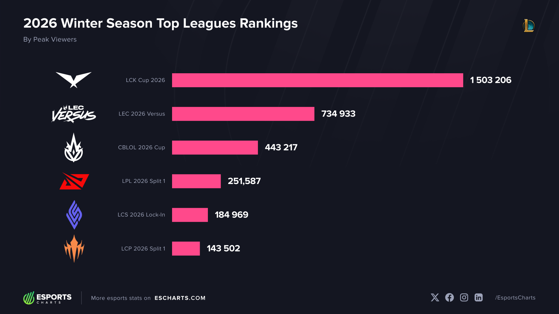 CBLOL recorded the largest percentage increase in peak viewership among all major global leagues this winter. The Brazilian broadcast continues to prove it is an independent powerhouse that doesn’t need global consolidation to thrive—it only needs the raw, unfiltered rivalry of its local and regional heroes.